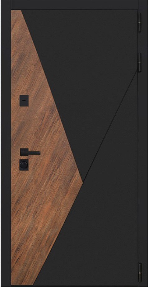 Внешняя отделка ПокрытиеПорошковое покрытие "муар черный". Экошпонированная дизайнерская панель МДФ 10 мм (цветовая комбинация: "шагрень черная" и "дуб старый")